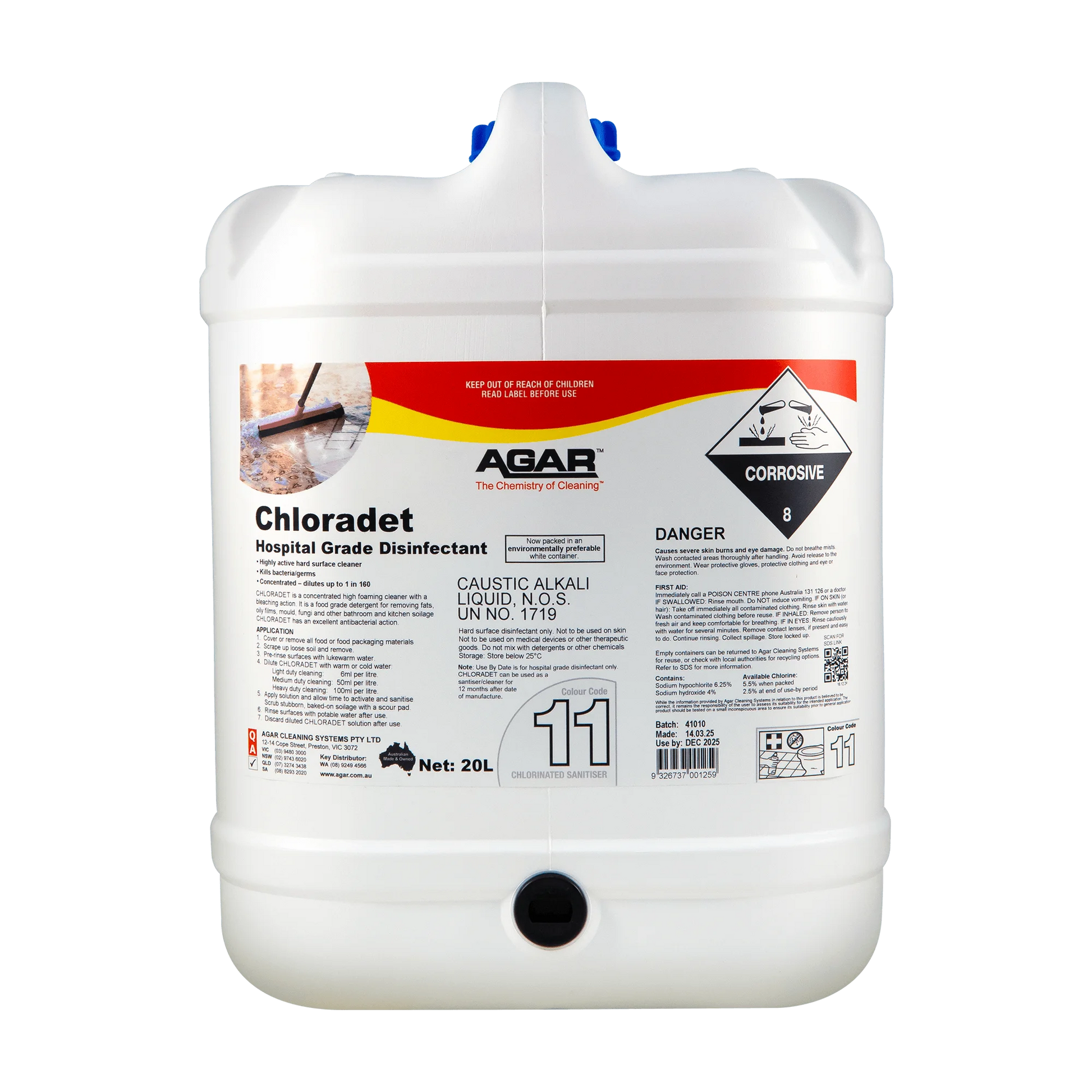 CHLORADET is a concentrated, high-foaming cleaner with a bleaching action. Because it offers a very effective method of killing undesirable microorganisms (germs, bacteria, etc.), CHLORADET is an excellent sanitiser.